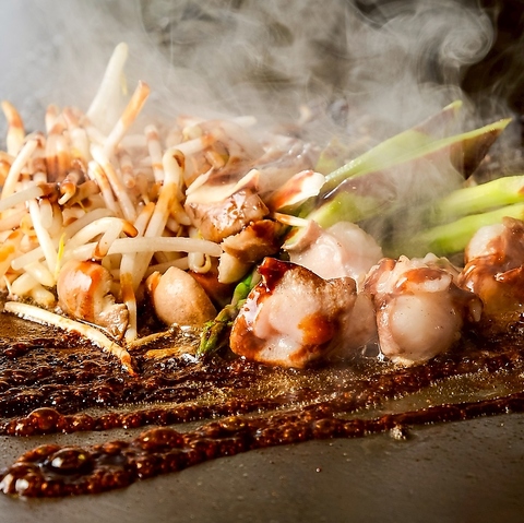 鉄板餃子やお好み焼きといった大衆メニューは勿論、牛ホルモン焼きや季節によって変わる旬の食材も使用。