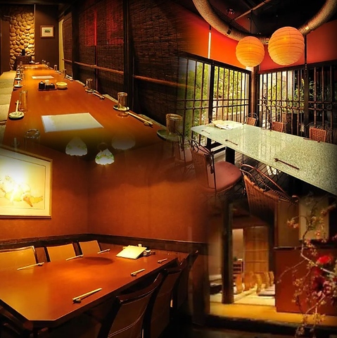 最大18名様OKの堀ごたつ個室です。昔ながらの落ち着いた和の空間で心置きなくじっくりとお食事をご堪能頂けます。完全個室のプライベート空間は、人目を気にせずお食事を愉しみたい方にも最適です。接待、会社宴会、2次会といったシーンや、合コン、女子会、誕生日会といったプライベートシーンにもおすすめのお席です。