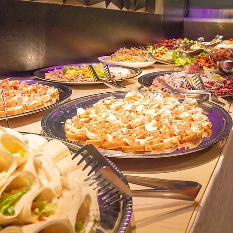 お料理はビュッフェ形式や大皿料理でのご提供。こだわりの創作料理をビュッフェスタイルでお召し上がり下さい!【Aプラン】…120分飲み放題付き料理10品5500円【Bプラン】…120分飲み放題付き料理14品6500円【Cプラン】…120分飲み放題付き料理16品8500円【結婚式二次会限定プラン】…120分飲み放題付き料理6品4500円