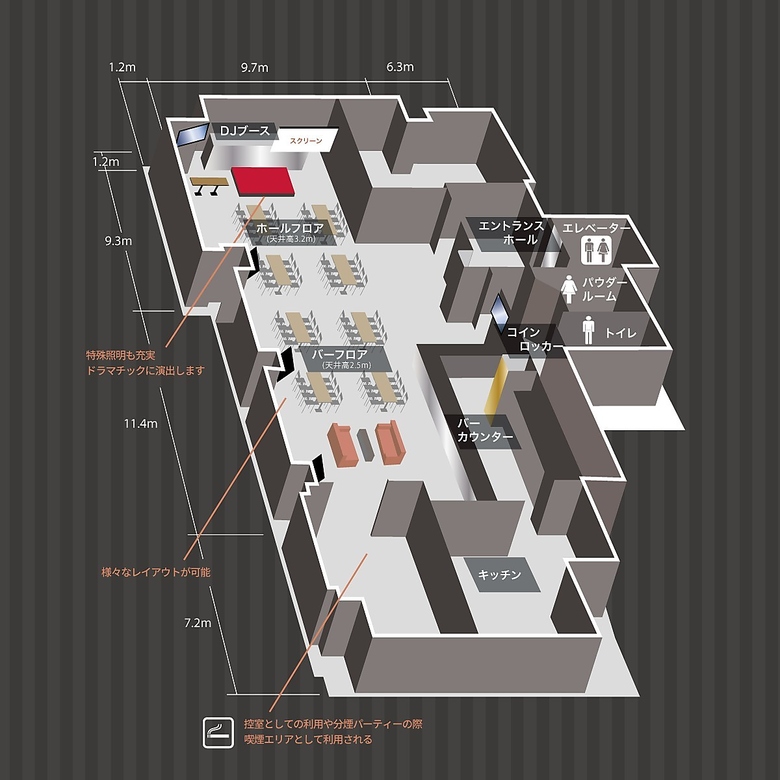 巨大スクリーン等充実の設備や高品質な照明・音響でパーティーをドラマチックに楽しく彩り、ゲストの皆様を非日常空間に誘います♪最大立食350・着席150名様収容可能な広々フロアは完全貸切◎最新型のパーティーやオリジナルの演出にこだわったパーティーなどご要望に合わせたパーティースタイルをご提供します!!