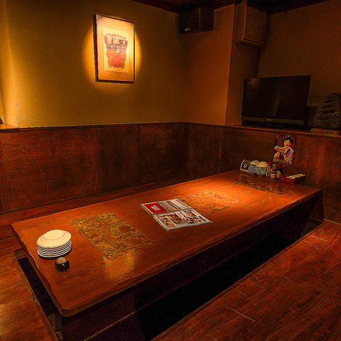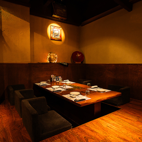 仲間との楽しいひとときを、カラオケ付き個室で心ゆくまで。歌って語って、気兼ねなく過ごせるプライベート空間は、宴会や二次会にもぴったりです。防音設備がしっかりしているので、存分に盛り上がれます。人気のお席のため、ご予約が確実です!足が楽な掘りごたつのゆったりできる個室空間です。
