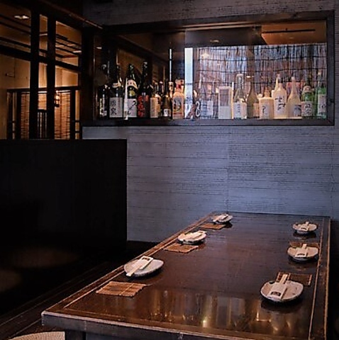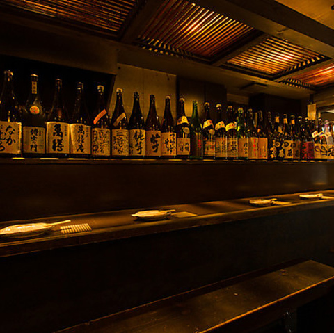 【カウンター席で贅沢なひとときを】お一人様も大歓迎のカウンター席は、目の前にずらりと並んだ銘酒を眺めながらゆったり過ごせる特等席◎温かい照明と木を基調とした落ち着いた空間で、こだわりの料理とお酒を心ゆくまでお楽しみください♪居心地の良さは抜群で、仕事帰りの一杯にも最適です。