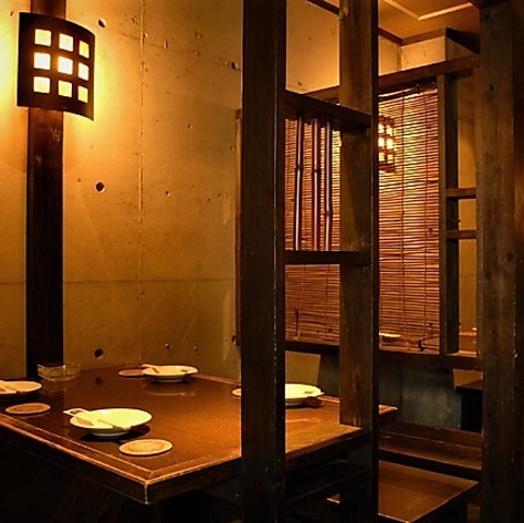 周囲を木製の格子や簾で仕切った半個室風のテーブル席です。プライベート感があり、親しい友人との飲み会や、接待などの大切なシーンでもゆったり寛いでお過ごしいただけます。