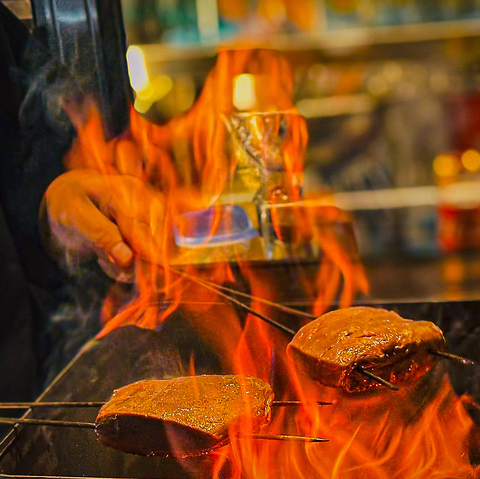 目の前で炙るので、豪快にお肉を美味しく召し上がっていただけます。一度食べたらやみつきに!◎
