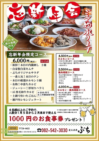 《詳細はコースページ!》ぶち流川店の忘新年会限定コースご用意しております!