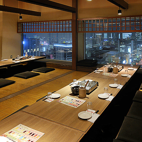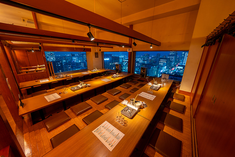 仙台の夜景を眺める事の出来るモダン和風の団体宴会場☆レイアウトを変えて様々な人数様に合わせた個室をご用意致します!開放感あふれる天空個室で楽しいご宴会をお楽しみください♪