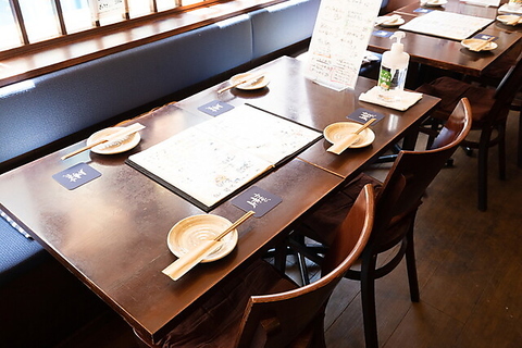 ゆったりと寛げるテーブル席は、片側がふかふかのソファー席となっております◎。長時間の滞在でも疲れにくく、リラックスしてお食事をお楽しみいただけます♪ デートや友人との食事、ご家族でのご利用にも最適です。落ち着いた空間で、会話が弾むひとときをお過ごしください。
