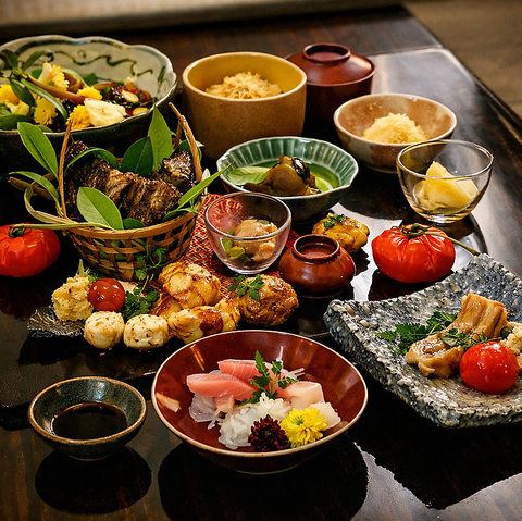 ご接待にぴったりです。A5ランクの和牛、くえ、からすみ、あわびなどの高級食材を使い夏の贅を尽くしました。飲み放題は店主が選び抜いた日本酒を中心に日本一になった果実酒、梅酒などをご用意しております。