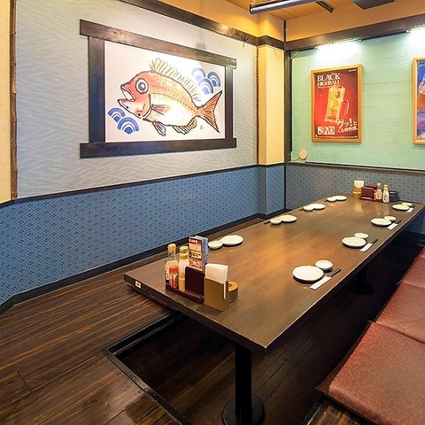 【2名様からご利用可能な個室席】王子駅でのデートや仕事帰りのカジュアルな飲み会などにおすすめ。明るくにぎやかな店内は、お誕生日やご友人との飲み会にもおすすめです。さかな酒場 魚星こだわりの料理と厳選したお酒をゆっくりお楽しみいただける寛ぎ空間となっております。