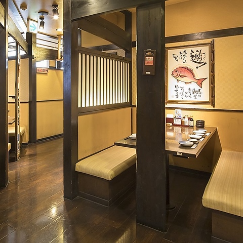 【大小さまざまなお席をご用意】店内は温かみのある明かりで雰囲気抜群♪気の合うお友達との飲み会や女子会などにぜひご利用ください。お席は人数に合わせてご用意できます。ご相談ください!新鮮な海の幸を味わいながら、ゆったりとおくつろぎください。