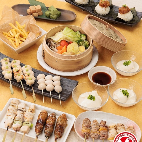 とり鉄オリジナル素材を使用した逸品料理と串焼きがバランスよく味わえる!自慢の焼き鳥や串焼き、選べる鍋、お酒に合うおつまみも充実した大満足コースをご用意。歓送迎会や仲間内の飲み会など各種のご宴会、お集まりにもぜひどうぞ!ご予約・ご来店お待ちしております。