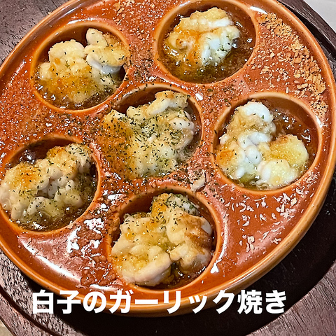 季節限定のメニューエスカルゴ風に仕上げました熱々の白子をバケットに乗せていただきます