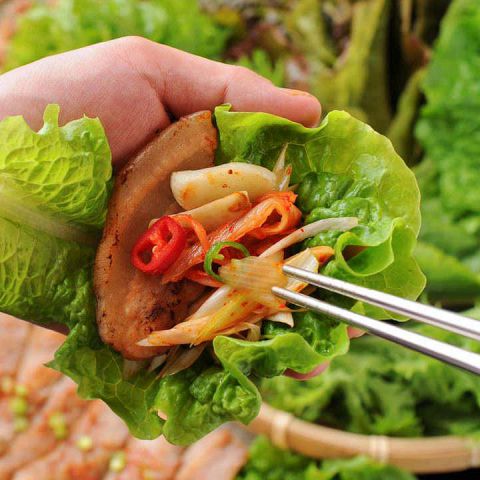 【定番】単品サムギョプサルはキッチンで焼いて持ってくるので、においや油で手が汚れるのを気にしなくてOK!