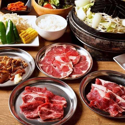 ファクトリー時代の「麦羊亭」から受け継がれる食べ放題スタイル。希少なラム肉を含む数種類のお肉やサイドメニューを心ゆくまで。手狭な店では味わえないゆったりとした空間で、並ぶことなく予約して楽しめるのが魅力。宴会や家族での食事に最適な満足プランです。