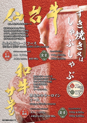 絶品!!【仙台牛コース】【黒毛和牛サーロインコース】が数量限定で登場!!!是非ご賞味あれ(^▽^)/