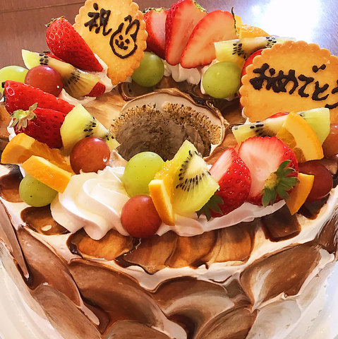要予約】お誕生日等に人気アニバーサリーコース☆6名様以上でホールデコレーションシフォンケーキをご用意