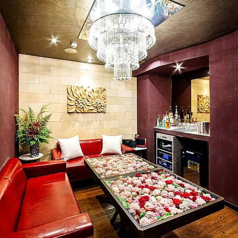 花が一面に敷き詰められた豪華フラワーテーブル席