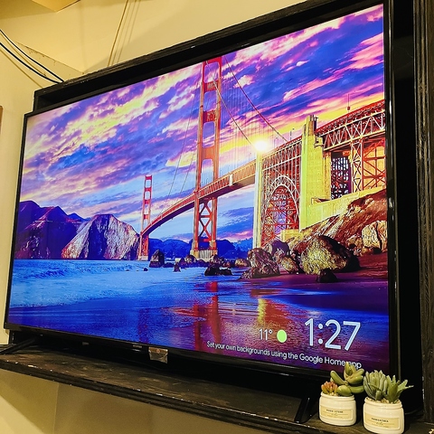 結婚式の2次会や会社忘年会でも使える大型50インチのテレビ!主役へのムービーやサプライズ動画も流せます。(要貸切)通常営業時は映像が流れてます。
