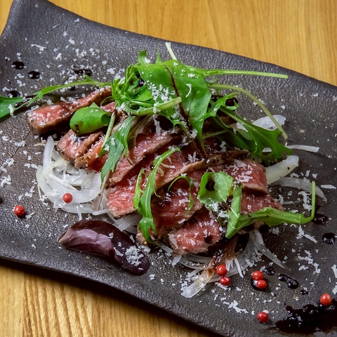 純国産和牛ならではの美味しさ、トリュフソースとバルサミコソースのコラボが新鮮野菜と最高の相性を演出!是非一度お召し上がりください。