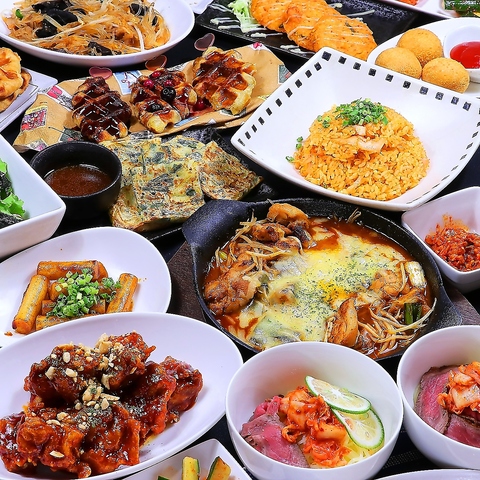 定番人気の料理と、期間限定でアジアン料理が心ゆくまで楽しめる食べ飲み放題コースあり☆『チーズボール』や『ヤンニョムチキン』、『エビチリ』に『水餃子』、『春巻』など…本格アジアンフードを多数ご用意!食後には甘党必見のデザートも各種ございます。さらに、女性に大人気のチャミスルや美酢も飲み放題です!思う存分満喫してください!