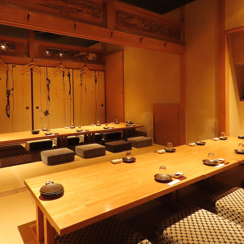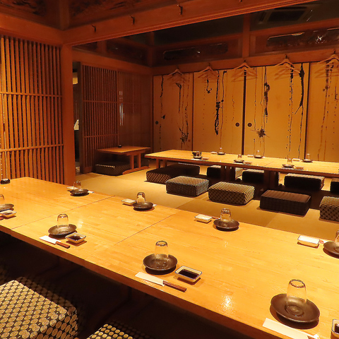 最大40名様までのお座敷空間が広がる。ゆったり落ち着ける空間です。