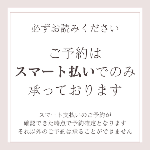 ご予約はスマート払いのみで承っております。、あらかじめご了承ください。