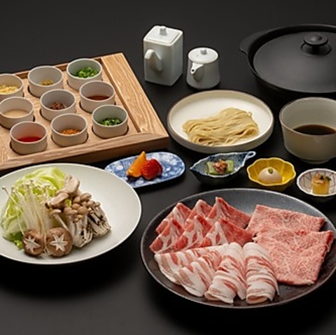 鹿児島県を代表する黒豚と黒牛を使った鍋コースです