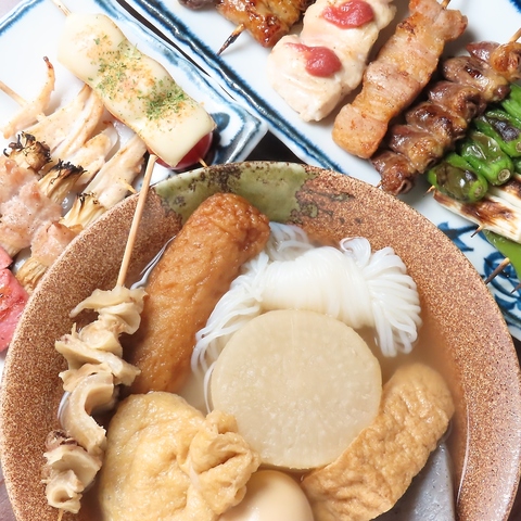 人気の焼鳥・おでんを食べ放題で!!飲み放題は生ビール・焼酎・カクテル等種類も豊富☆ゆったり120分3750円