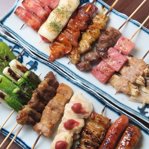 定番串から変わり串まで全40種が食べ放題!!焼鳥以外にも揚物、焼魚、おでんと飽きさせないメニュー作りが◎