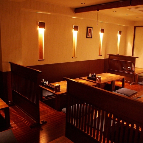 1階は掘りごたつと個室もご用意。宴会でもプライベートシーンでも雰囲気を引き立てる上質な空間でどうぞ。