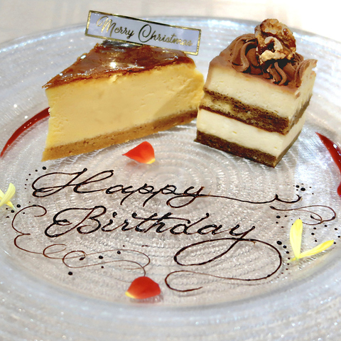 お誕生日や記念日、お祝いなど、大切な方へのサプライズはぜひ当店にお任せください!お好きなメッセージと演出を添えた、特別なデザートプレートをご用意いたします。想いを伝えるひとときが、心に残る素敵な思い出になるよう、スタッフが全力でお手伝いいたします。