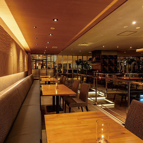 外の景色を眺めながらお食事を楽しむことができるテラス側のお席です。ご人数様に応じてお席をご準備いたします。