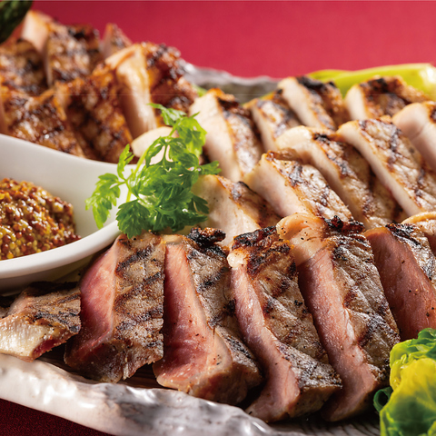 伊達鶏・麓山高原豚・AUS牛3種類を1ポンド(454g)盛り合わせた豪快で美味しいミックスグリル。 ※2日前12:00までに要予約 ※営業時間内のみ受付