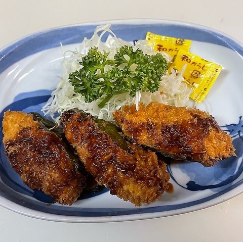 椎茸肉詰め、茄子の肉詰めあり(肉詰め3点盛り1100)
