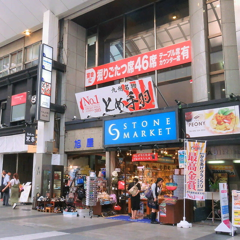 花畑町駅から徒歩3分、熊本城・市役所前駅から徒歩4分。「下通アーケード」内のビル2階に構える当店は、駅からのアクセスのよさはもちろん、観光名所からも近く、地元の方も行き交う活気あふれる場所です。お仕事帰りやご旅行・出張、お買い物のついでなど、日常の様々なシーンでお気軽にお立ち寄りください!