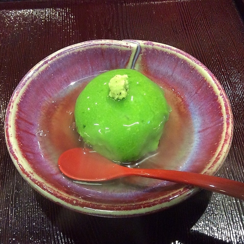 えんどう豆(うすい豆)の鮮やかな新緑に、海老や鰻といった豪華な具材が顔を出す、まさに春を象徴する贅沢な一品です!海老・鰻の 濃厚な旨味とプリッとした食感や、竹の子・枝豆の春の香りとシャキッとしたアクセントに、ゆりねのホクホクとした上品な甘みが一度にお楽しみいただけます。翡翠色の美しさも魅力です。