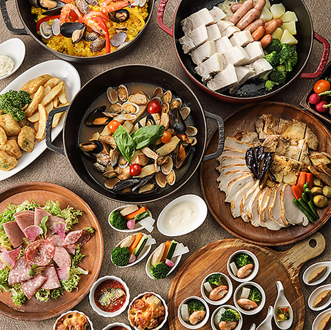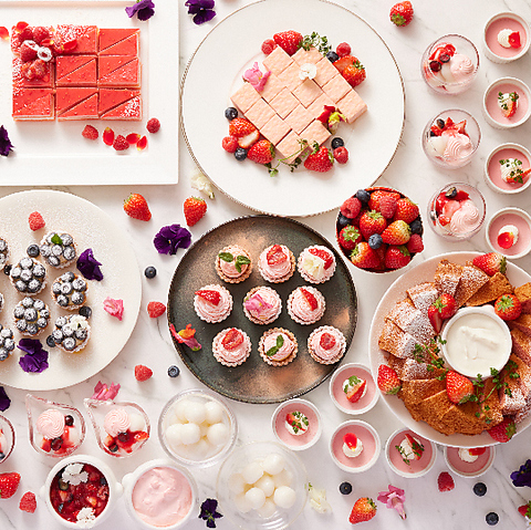 ランチブッフェは土日祝日11:30~14:00で開催中。(※時期によって毎日開催する場合もあり)季節ごとに内容が変わる、シェフとパティシエがこだわってお作りするお料理とスイーツを思いのままご堪能ください。2,000円以上のご利用で駐車場1台2時間分サービスも。