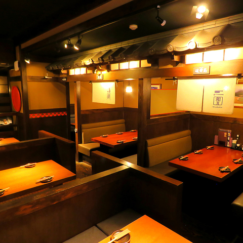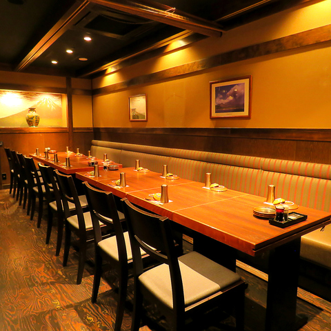 雰囲気のある店内は席のタイプも様々なのでいろいろなシーンに対応可。会社での飲み会や接待、友人とのお食事やデートなど、ご利用シーンに合わせてお席をご案内させていただきますので、ご希望などございましたらご相談くださいませ。個室のお部屋は人気がございますのでご予約、ご相談はお早めにお願いいたします。