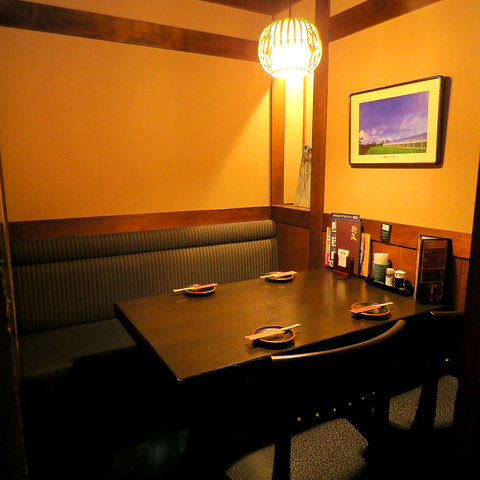 ゆったりしたテーブル席の個室もございます。靴を脱いだりと、お座敷が苦手な方におすすめです。広々とした個室空間ですので、少人数の宴会に最適な空間となっております。周りを気にすることなくゆっくりお過ごし頂けます。