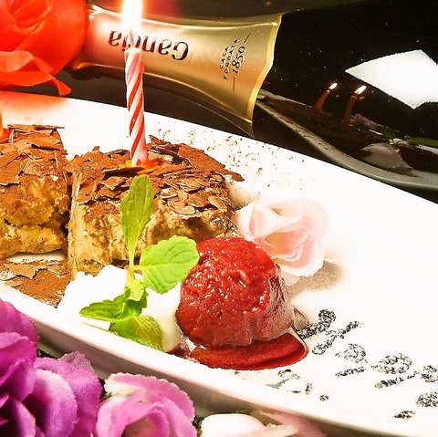 記念日、誕生日もベッラベーラにお任せください!!ご予算に応じて「デザートプレート」などご用意させて頂くことが可能です!お気軽にご相談ください。