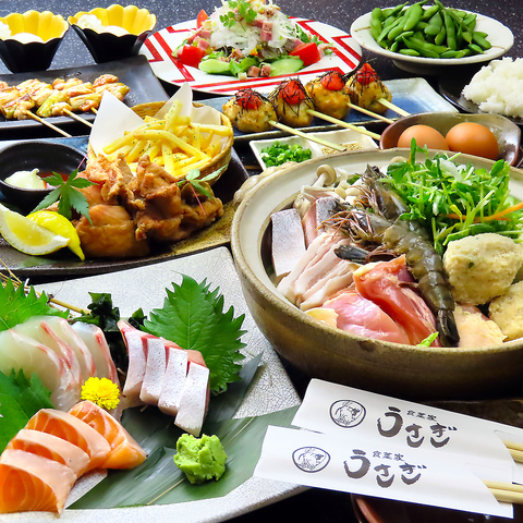 姫路中央市場から毎日仕入れる瀬戸内の幸。新鮮かつ美味しいお造りや素材を生かした味付けで一つ工夫した一品などうさぎの自慢を特と御賞味あれ。※季節、天候によって内容が変わる場合がございます。 ※写真はイメージです。