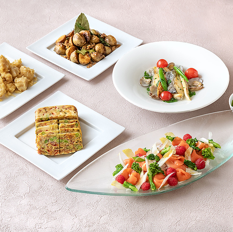 3月のランチブッフェでは、素材の旨味を活かしたアレンジ料理が楽しめるほか、春野菜をふんだんに使用した「春野菜のセレクション」など、彩り豊かなお料理を約60種類ご用意しております。
