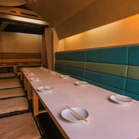 靴を脱いでゆったりと寛げるお座敷席や掘りごたつ席を完備しております。温かい雰囲気の中で、リラックスしてお過ごしいただけます。普段使いから、会社宴会や女子会、ご家族でのお食事など、ちょっとした特別な集まりにも最適◎足を伸ばしてリラックスしながら、大切な方々と楽しいひとときをお過ごしください
