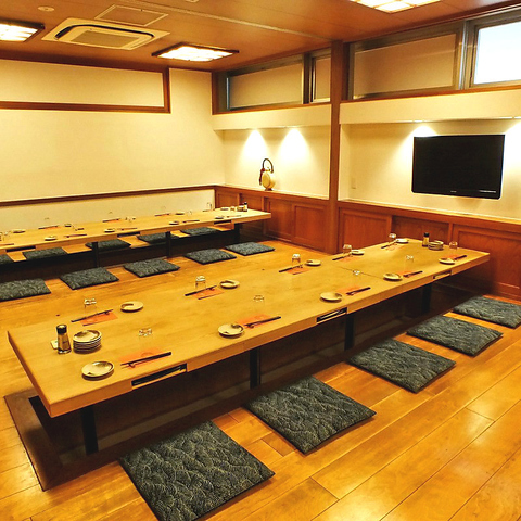 大人数での会社宴会に最適なお座敷個室席をご用意しております。お履き物を脱いでゆったりとお寛ぎください。