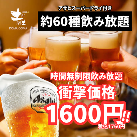 日~木曜限定◎【時間無制限飲み放題→1,600円】破格でご提供しております!その他飲放み題特典もご用意!