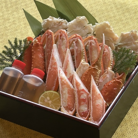 かに道楽の看板メニュー「かにすき」をご自宅でもお楽しみ頂けます。オリジナルの白しょうゆだしもお付けしておりますので、ご自宅でかに道楽の味をお召し上がり頂けます。より食べやすいかにしゃぶのテイクアウトも1人前6,588円から承っております。