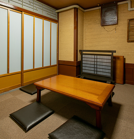 【座敷個室】ゆったりできるお座敷個室は少人数様~人数に合わせてご用意致します。旨い料理と旨い酒…心ゆくまでお楽しみ下さい。(換気・消毒・空気清浄機配備等、感染予防対策を施しております。どうぞ御安心してご利用くださいませ)
