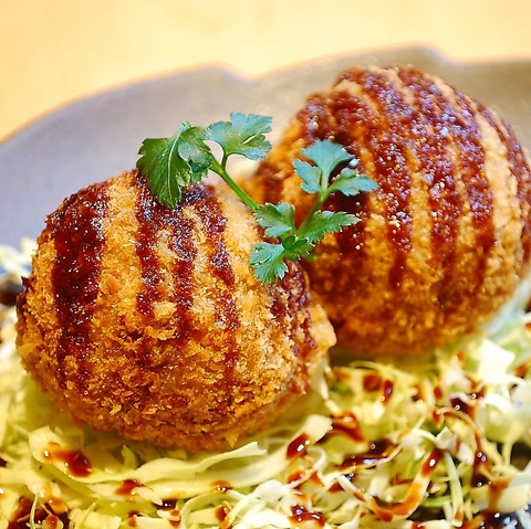 岡山県の一部地域でのみ育まれるブランド黒毛和牛「千屋牛」当店では、この千屋牛を徹底した管理のもと一定期間熟成させ、旨みをぎゅっと凝縮させた「ステーキ」をご提供。口の中に広がる深い味わいは格別です。さらに、千屋牛のミンチと地元ブランド豚「ピーチポーク」を贅沢に使った「贅沢コロッケ」もご用意しております。