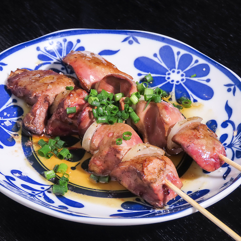 炭火で焼き上げる新鮮な鳥レバーは、外は香ばしく中はトロッとクリーミー。味付けは「タレ・塩・ゴマ油」の3種類からお好みで選べます。炭の香りと濃厚なレバーの旨味は、お酒との相性も抜群です。