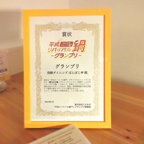 ■全国の頂点へ!「平成リバイバル鍋グランプリ」にて、当店の【発酵すぅぷのモツちーずチゲ鍋】が日本一の栄冠に輝きました。50年守り抜いた秘伝スープと発酵の魔法が融合したこの味は、専門家からも高く評価された当店の誇りです。現在は提供しておりませんが、この「日本一の技術と情熱」は、今お召し上がりいただける全ての美肌発酵鍋に受け継がれています。札幌が誇る最高峰の発酵技術を、ぜひ今の鍋でお確かめください。